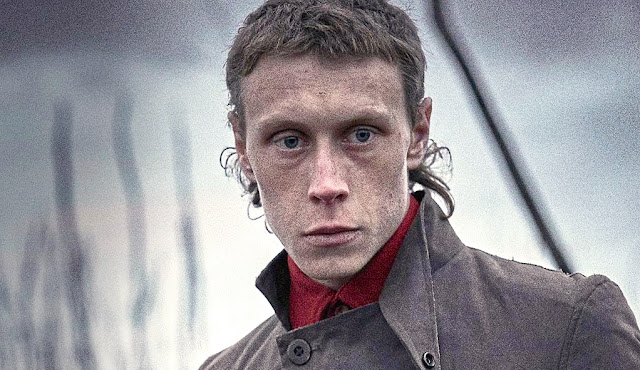 Back home again, Ned (now George MacKay) finds things he doesn’t like—Mom’s with George King (Marlon Williams), a cocky-Californian not much older than Ned, while brother Dan (Earl Cave) and buddy Steve Hart (Louis Hewison) are horse thieves, not helping relations with local cops (they also wear dresses, convincing victims they’re crazy so they’re not pursued)—and something he prefers, prostitute Mary Hearn (Thomasin McKenzie), although she has a baby. Another frequent guest where Mary works is Constable Alexander Fitzpatrick (Nicholas Hoult) who can’t complain much about Ned’s family given his own proclivities, such as hanging around the whorehouse nude, says he’ll try to not have Dan charged with horse theft (he’s overruled by superiors so Dan gets a 16-month-sentence) in return for an introduction to Ned’s sister, Kate (Josephine Blazier). But, the Constable ruins everything by telling Ned the baby’s father is George (who leaves, just as Ned rides off with Dan). Fitzpatrick wants Ellen’s help in catching them but she refuses, just as Ned barges into the Constable’s home to make a deal but to no avail. Ned then recruits a small army (the Sons of Sieve, in honor of legendary Irish terrorists [some would say “dissidents”]*) to go to war with the Victoria police force (he also shows himself amenable to Joe’s need for physical closeness), even as Mary’s now pregnant by Ned but rarely sees him (when she does, there’s another confrontation with Fitzpatrick where he's shot in the hand; Ned escapes while Ellen’s sent to prison [in a padded cell]).